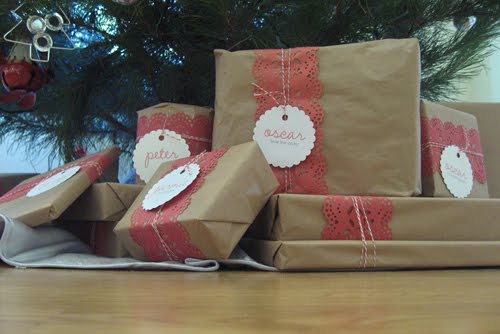 I love the neutral brown with an intricate lace pattern and unique gift tags.